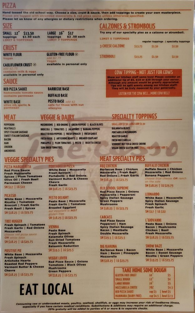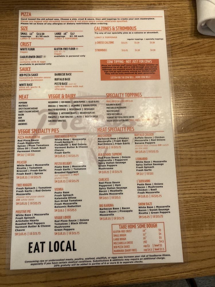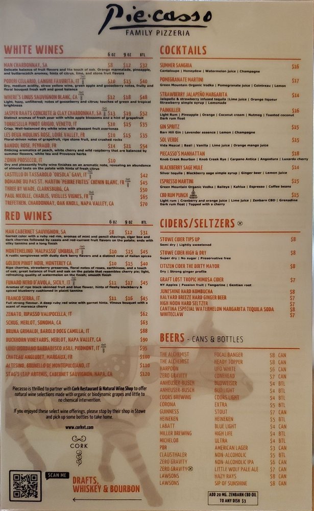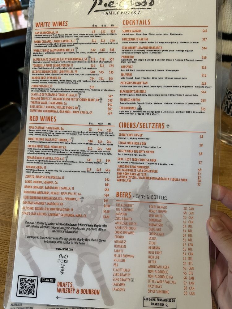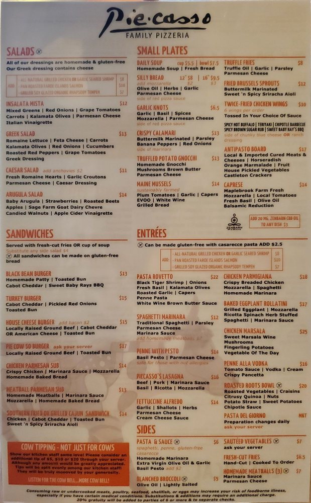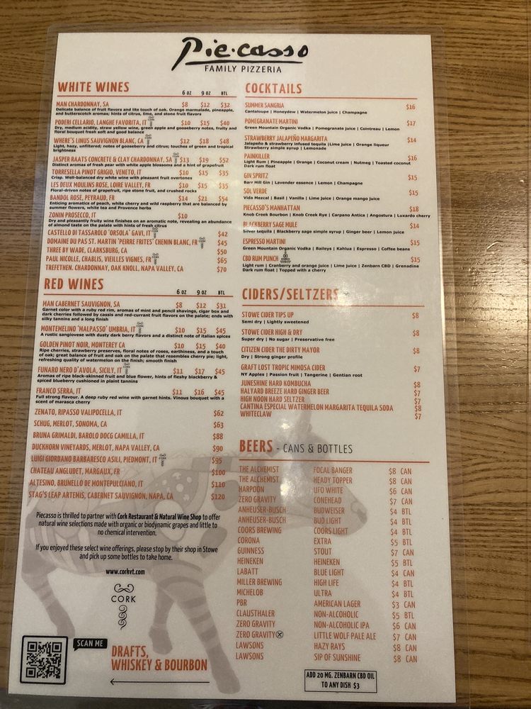 Piecasso is a vibrant restaurant in Stowe, VT, offering a diverse menu of burgers, pizza, and Italian cuisine. Brimming with options for vegans and vegetarians, the restaurant also caters to families with a variety of choices on the kids' menu. The friendly staff, quick service, and pleasant outdoor seating make it a top choice for dining in or takeout. Customers rave about the delicious pizzas, especially the veggie lover pie and gluten-free options. The crispy yet light dough and flavorful sauce elevate the pizza experience. The menu features a mix of traditional favorites like spaghetti and meatballs, as well as unique dishes like mushroom risotto. Overall, Piecasso stands out for its inviting atmosphere, diverse menu, and commitment to customer satisfaction.
